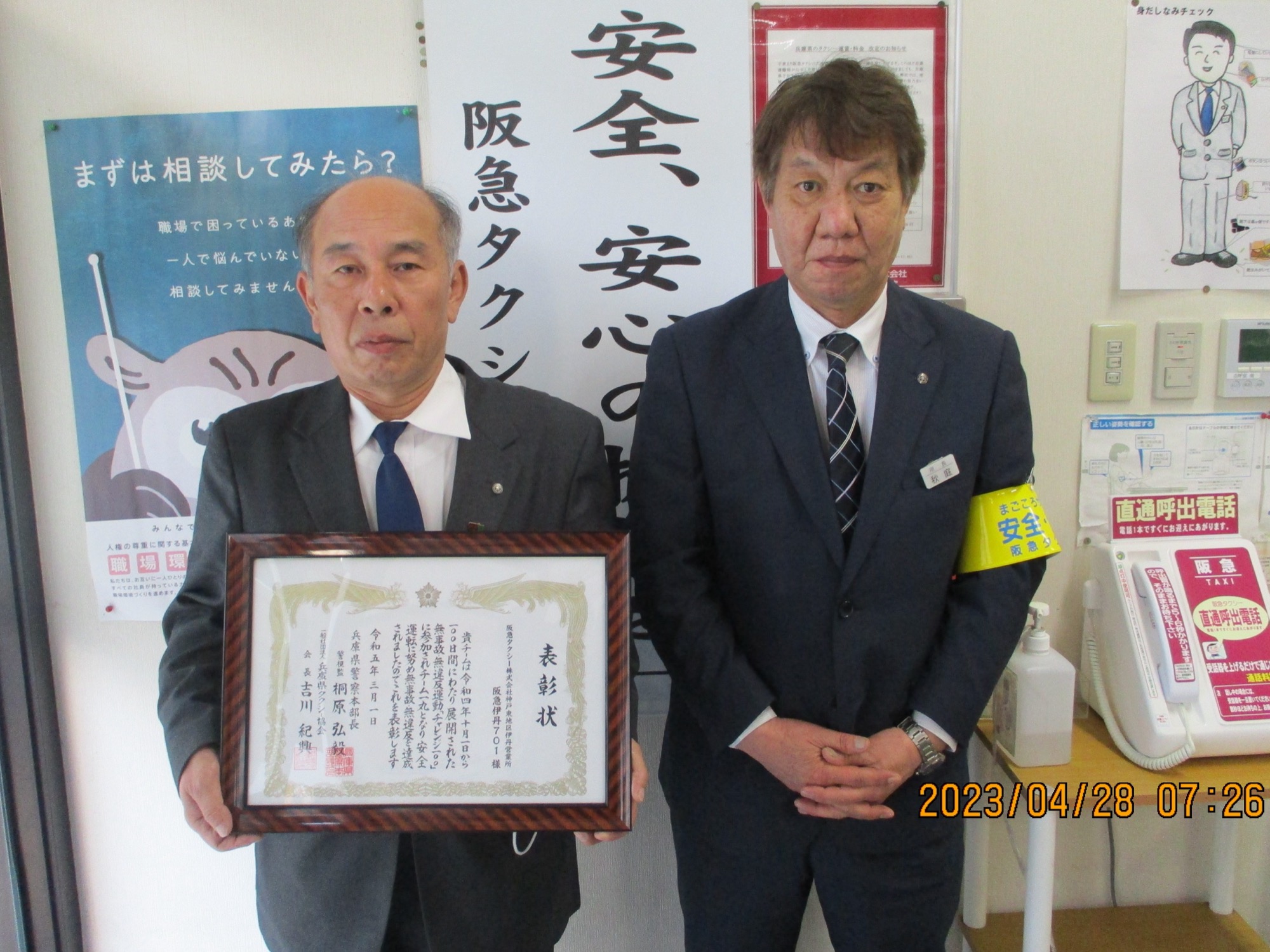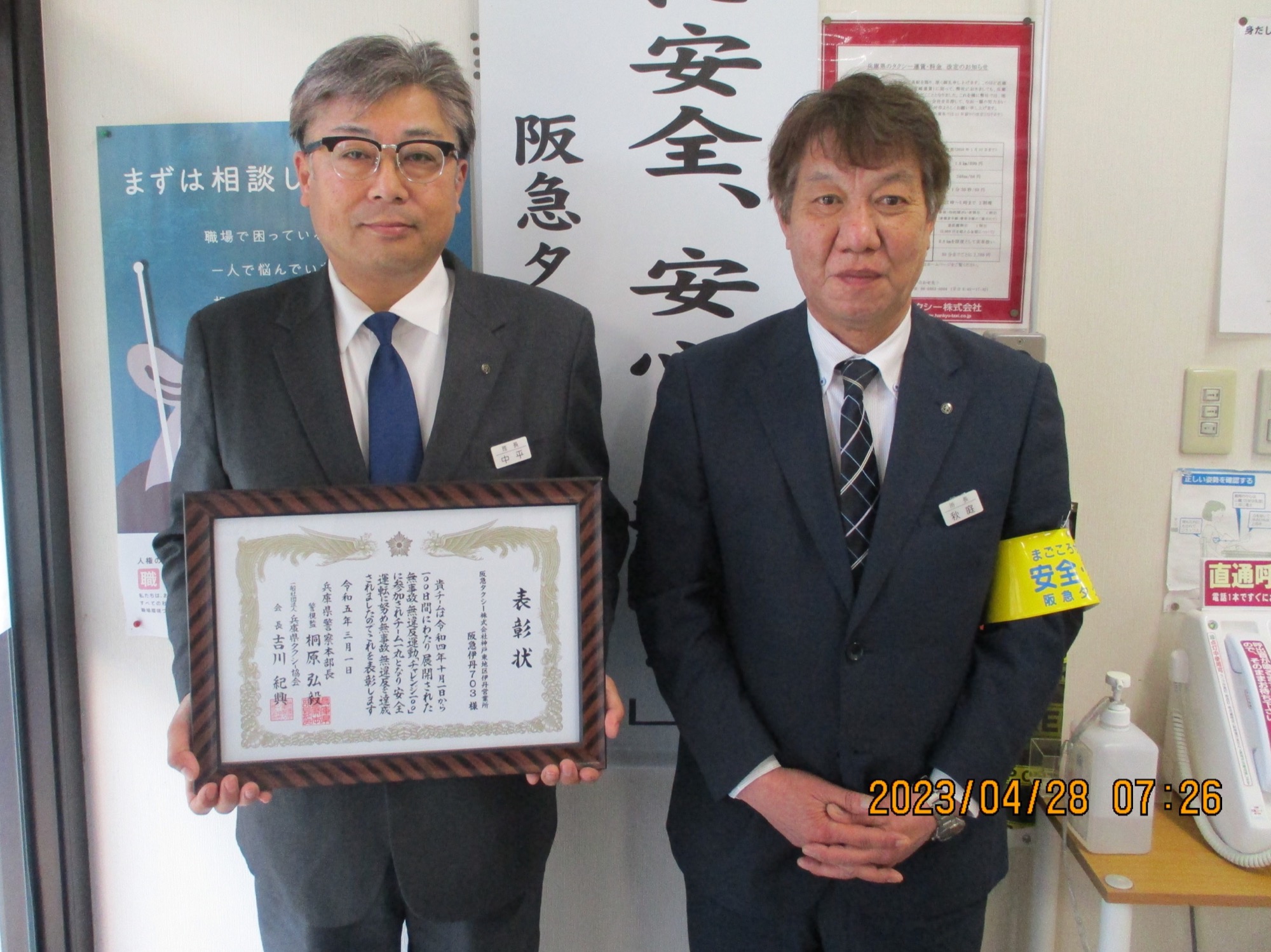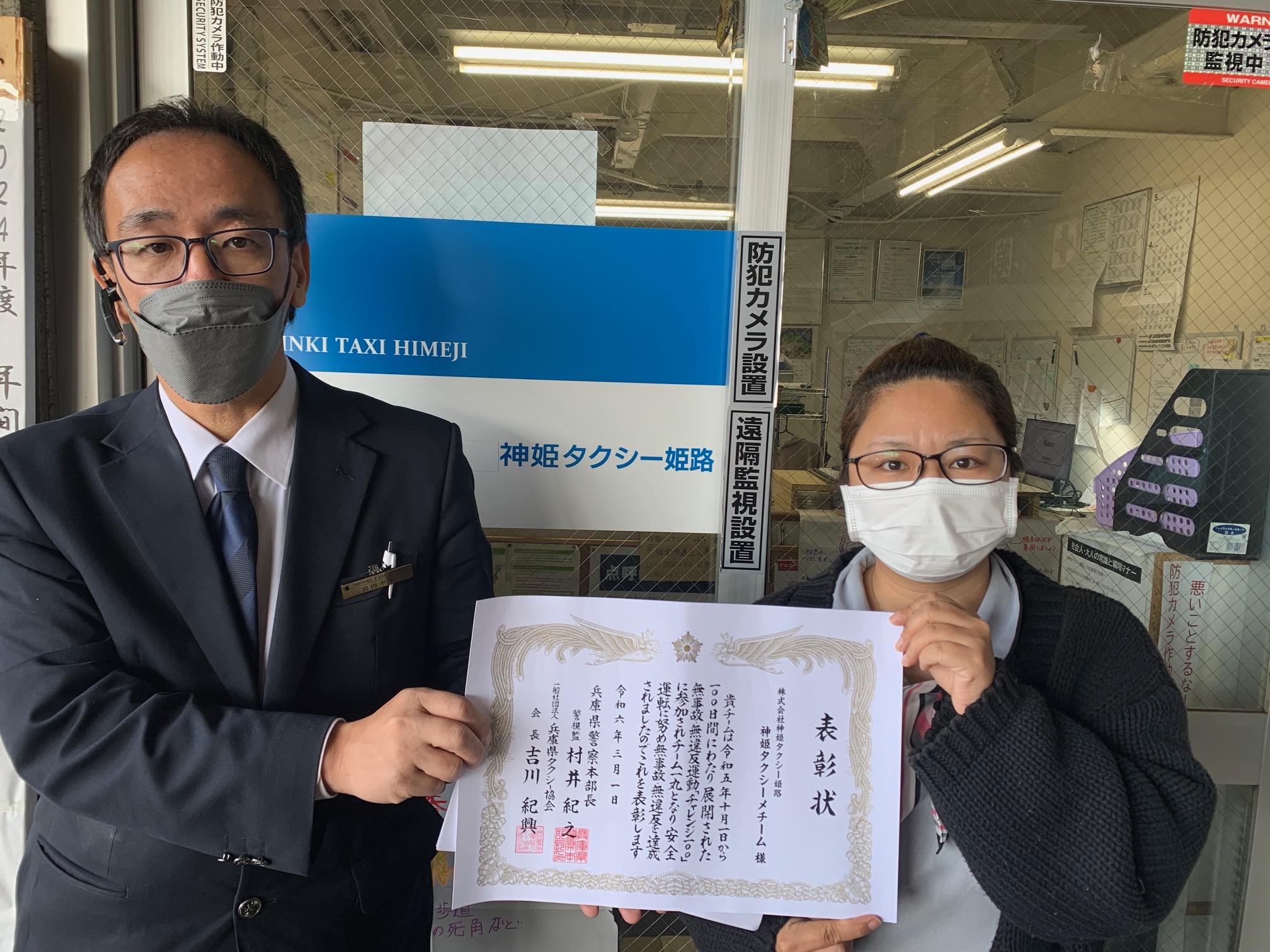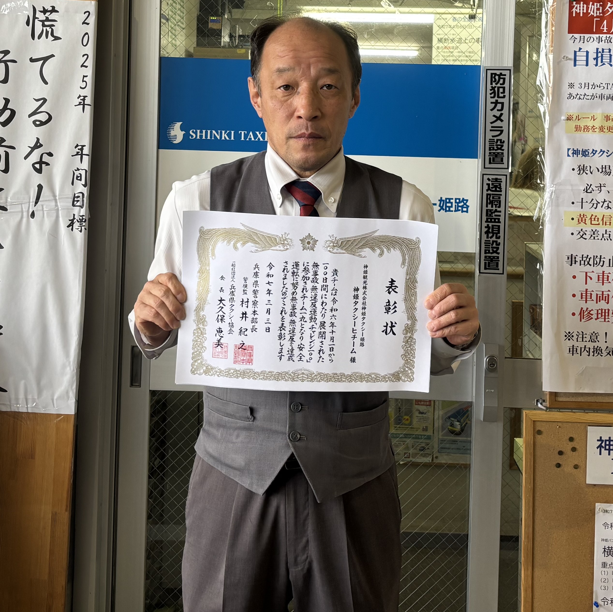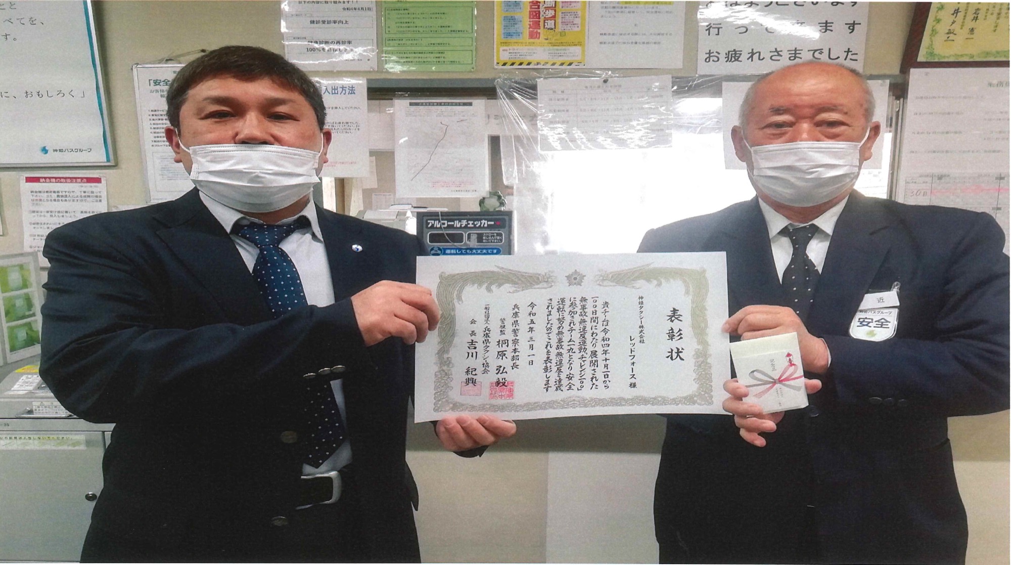 兵庫県タクシー協会では、県内事業者にて参加チーム(10人で1チーム)を編成し、積極的に乗務員の皆さんの交通安全意識を高めることで交通安全活動の推進を図り、運動期間中、無事故・無違反を達成した事業者・チームを賞揚しております。
